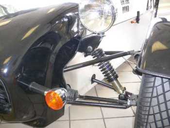 The Lightweight This model was first shown in 2003, but it was only in 2005 that it actually went on sale, due no doubt to the modifications needed, as it was panned as being flimsy to say the least. Since that, it has been strengthened around the main suspension components, and RHSC were supposedly running one in club races. The lightweight hit a serious snag with the SVA, when a poorly built one was submitted for inspection, this put the model under the spotlight for all the wrong reasons, and lightweights in the original design will now fail the SVA on major issues. Anyone thinking of buying a none-SVA'd Lightweight kit secondhand needs to know the problems beforehand. PLEASE NOTE, this Lightweight has been through the SVA and is in good order. |